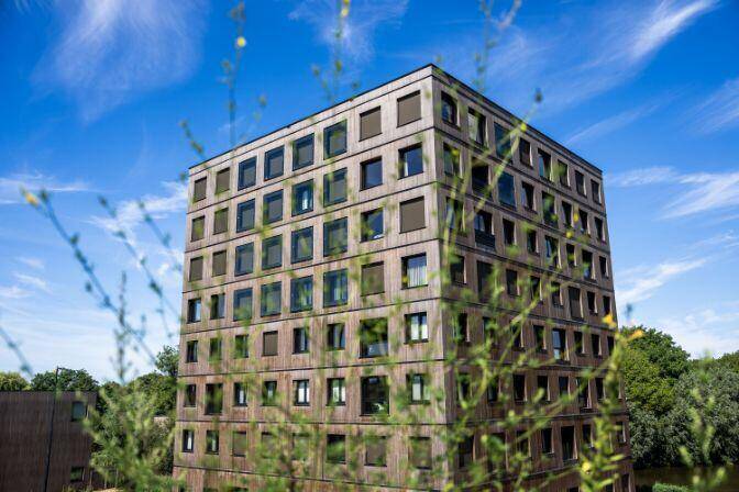 In woongebouw Opportuna wonen jongvolwassenen tussen 23 en 28 jaar. De 174 studio’s (sociale huur) zijn 35 tot 45 vierkante meter groot, maar hebben allemaal een privé buitenruimte. De studio’s zijn breed en ondiep. Dat maakt de daglichttoetreding goed en de plattegrond flexibel indeelbaar.