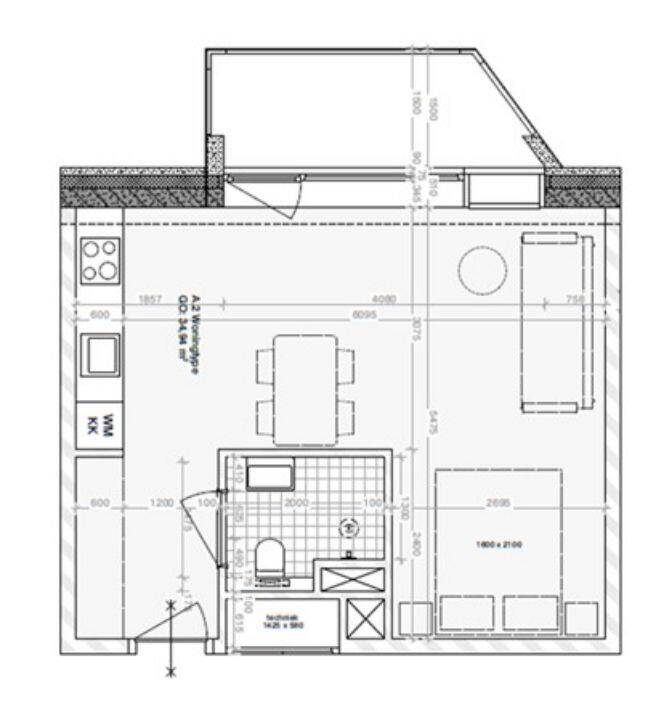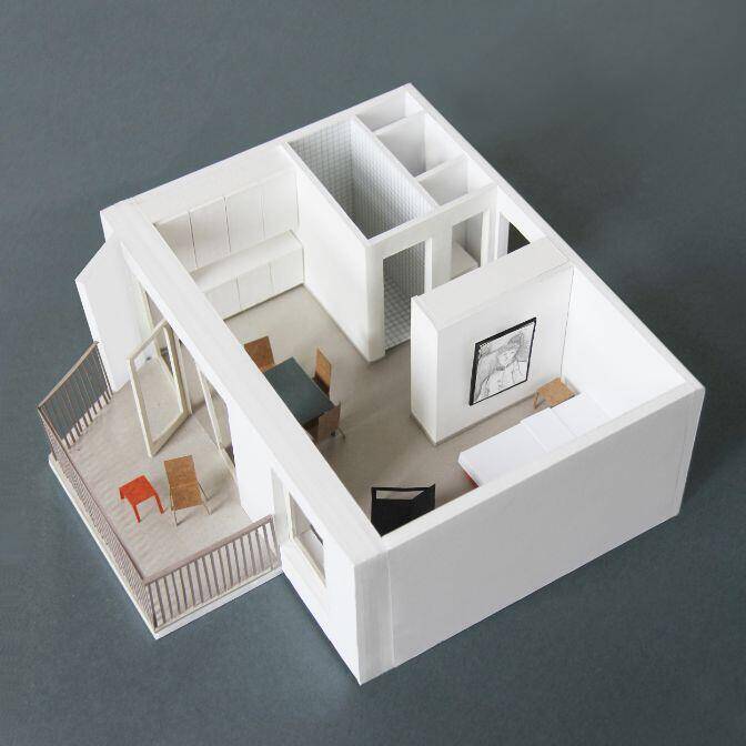 Studie maquette van een van de appartementen aan de westgevel