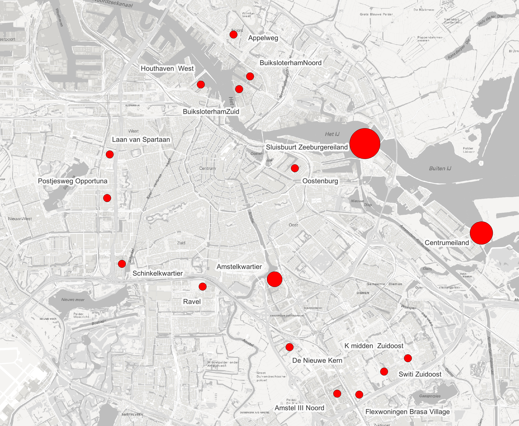 Op deze kaart staan voorbeeldprojecten uit de handreiking Gewoon Goed, een impulsprogramma waarmee de stad Amsterdam de woningbouwproductie op gang wil houden door het proces anders aan te vliegen - van gebiedsontwikkeling tot kavel tot woningplattegrond. Op de desktop versie: tip de stippen aan en je ziet welke projecten het betreft. Bekijk voor meer informatie de handreiking Gewoon Goed met meer dan 20 voorbeelden van Gewoon Goed in de praktijk.